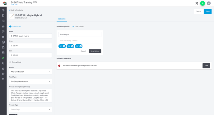 - Retail Type: examples include apparel, concessions, equipment, etc.Next, enter the following information on the product page: